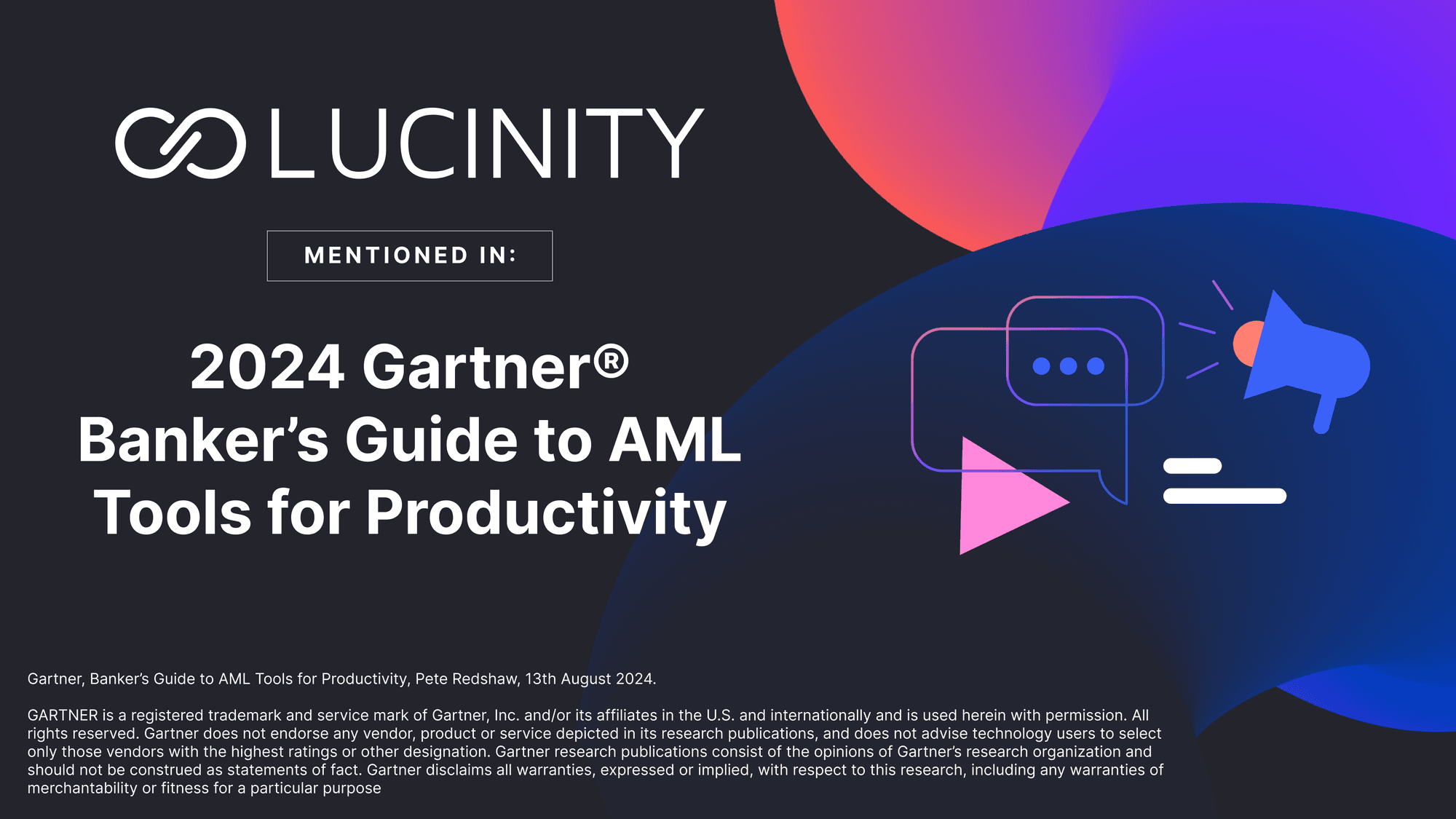 Lucinity has been mentioned in the recent 2024 Gartner Banker’s Guide to AML Tools for Productivity report, released on August 13th, 2024 by Pete Redshaw.